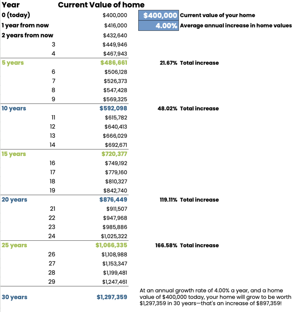 - In 5 years → The home’s value would be nearly $500,000